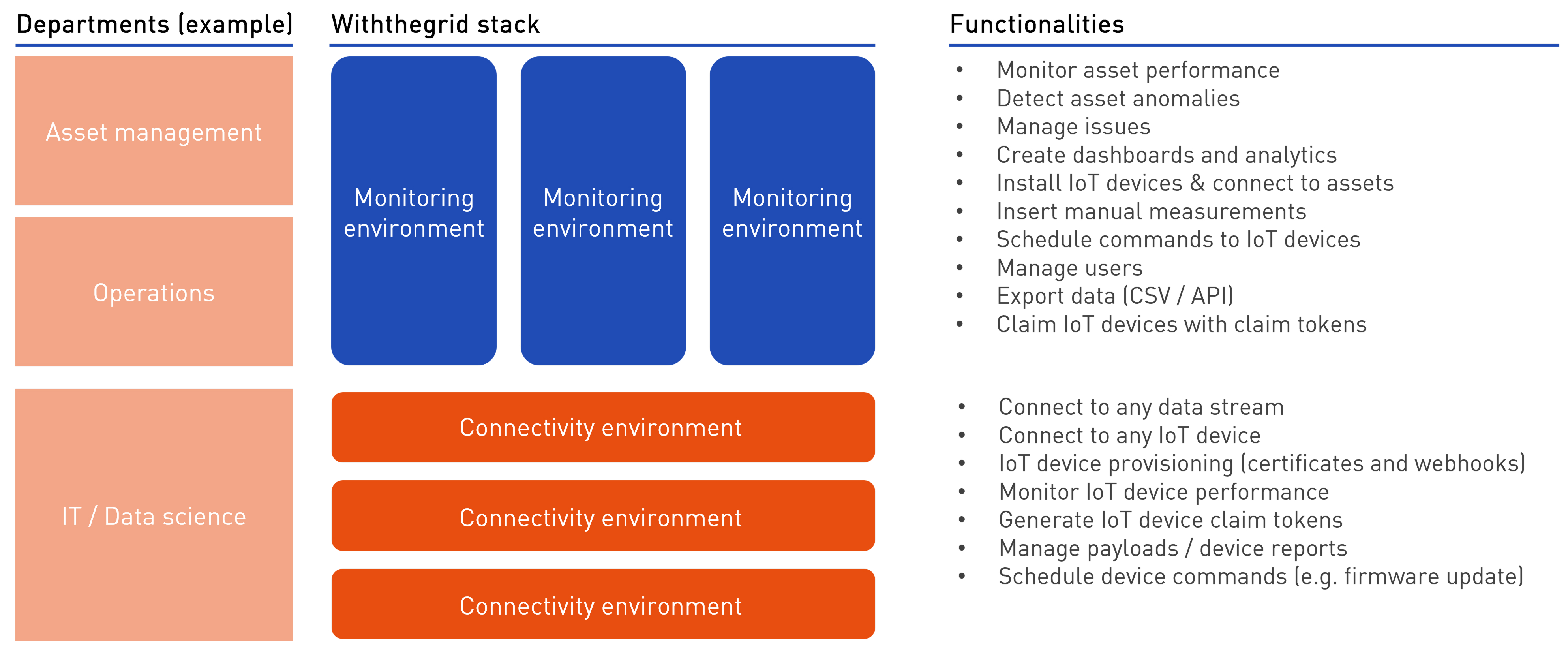 The Withthegrid Asset Monitoring Platform has two types of environments: