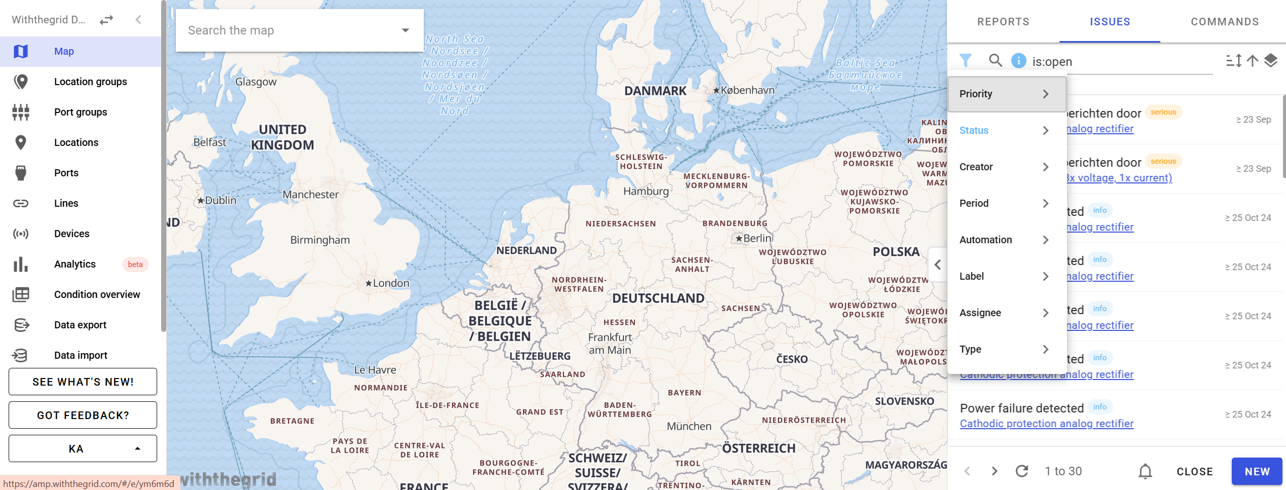Issues are what it’s all about in the Withthegrid platform. As long as there are no issues nothing needs your attention. The overview of issues is always visible on the right hand side of the screen. This shows the locations where something unexpected has occurred.